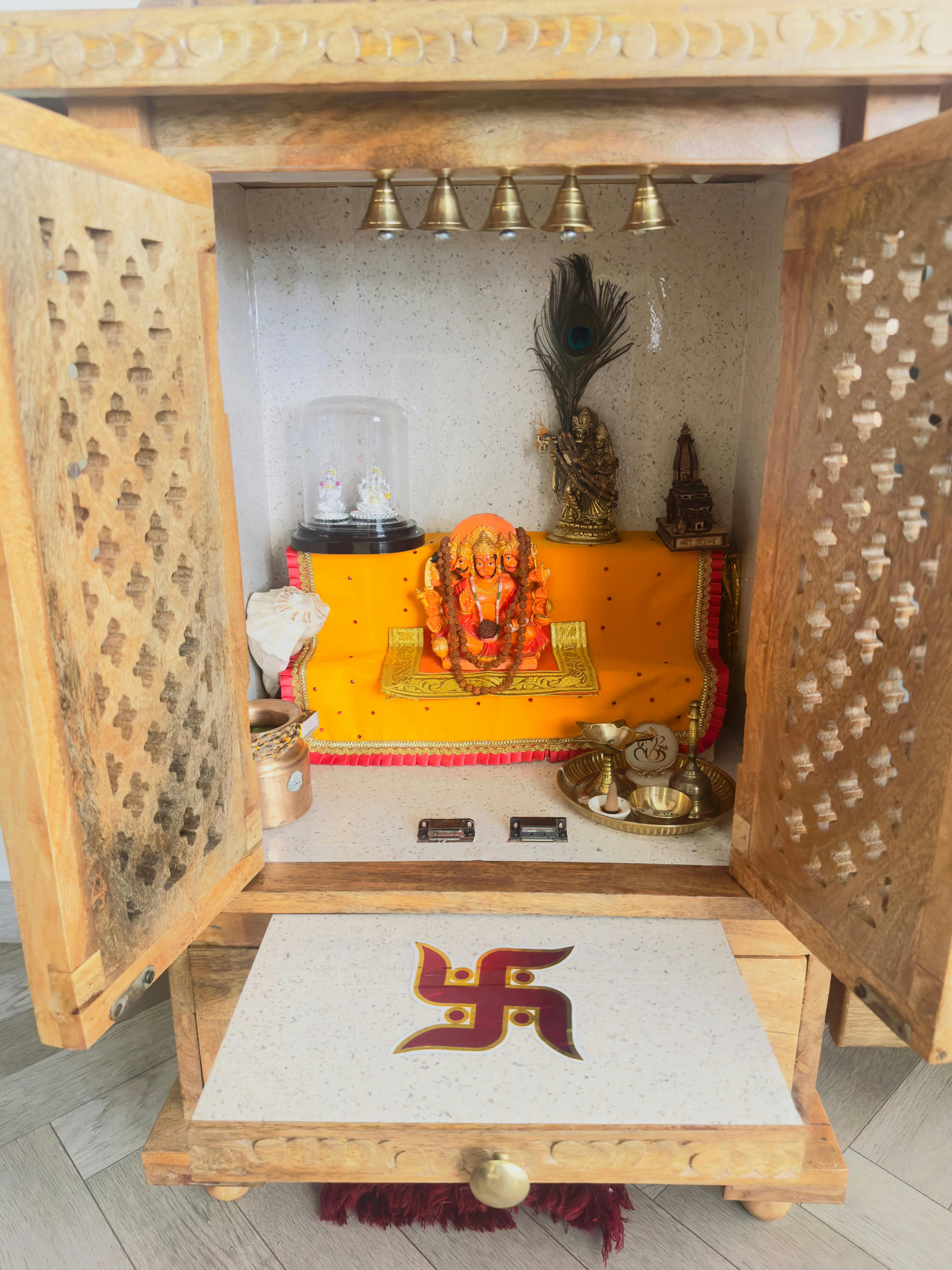 I recently received my wooden temple and I must say, it has exceeded all my expectations. The quality is exactly as shown in the pictures, beautifully crafted and sturdy. I decorated the inside with wallpaper and added rechargeable lights, and the effect is simply divine. Everyone who visits my home is instantly drawn to it and asks where I got it from. Truly a centerpiece that adds grace and positivity to the space. Highly recommended for anyone looking for an elegant and spiritual addition to their home!