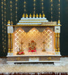 Blue Gold Hand Painted Big Wooden LED Pooja Mandir