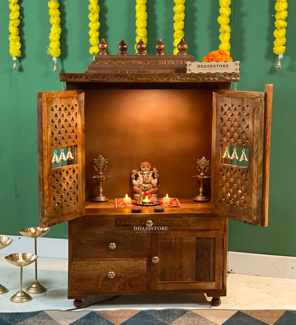 Rajlaxmi South Indian Style Solid Sheesham Wood Pooja Mandir | DDASSWTSOLID43