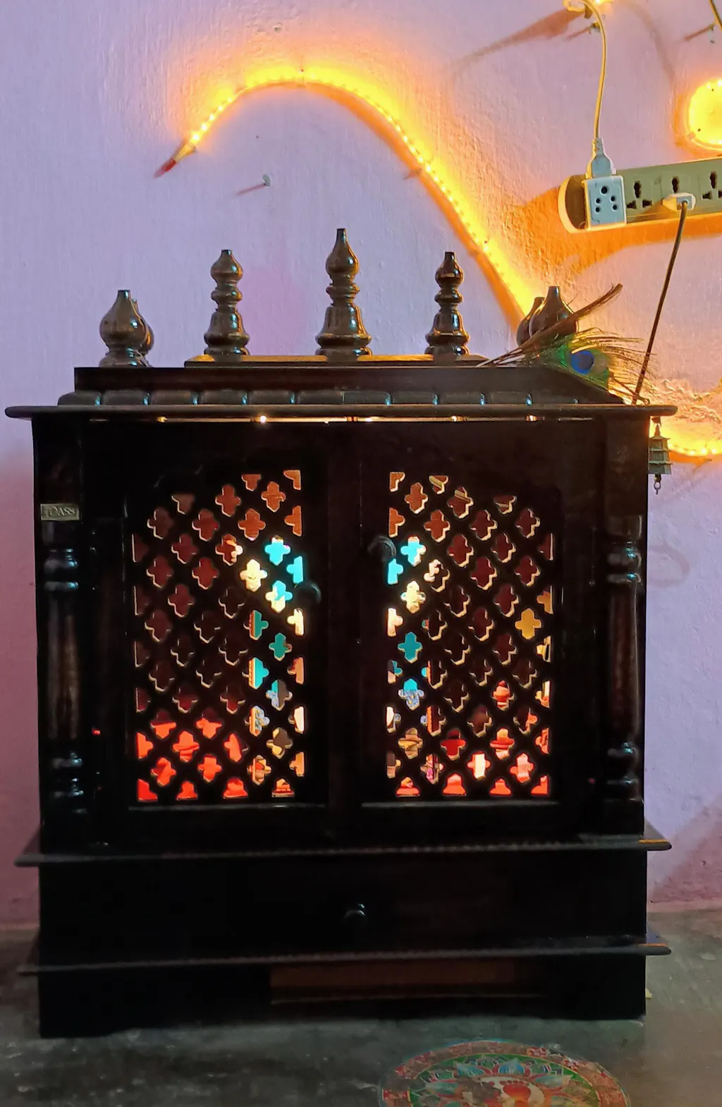 Dark Sheesham MDF Wooden Pooja Temple Mandir For Office By D'Dass Store!