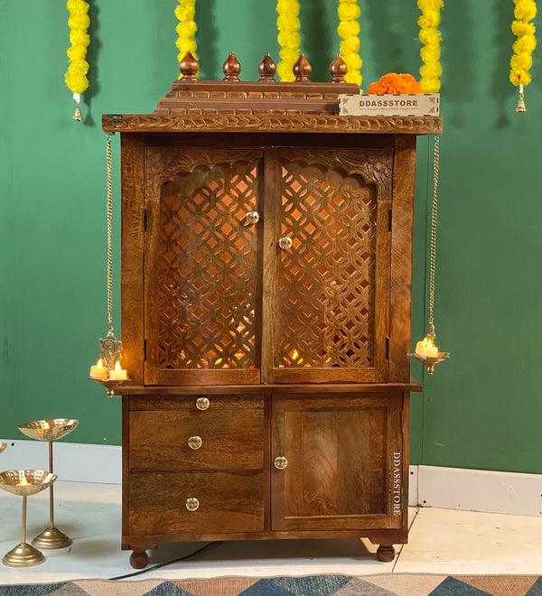 Shri Dwarkadhish Solid Sheesham Wood Pooja Mandir | DDASSWTSOLID45