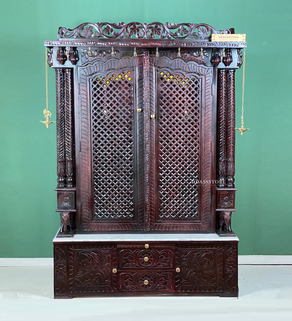 South Indian Style Solid Sheesham Wood Pooja Mandapam with Gopuram | Pooja room designs