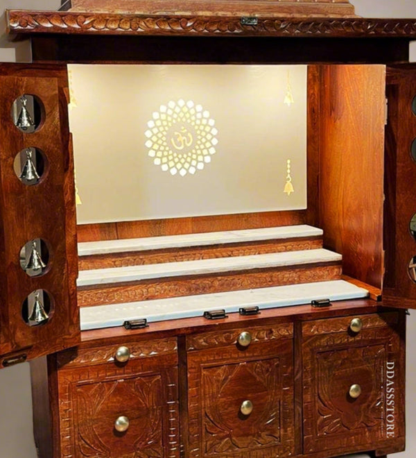 Pooja Mandapam_28 (लकड़ी के मंदिर / लकड़ी के पूजा घर) South Indian Style Solid Sheesham Wood Puja Ghar for Home By D'Dass Store!