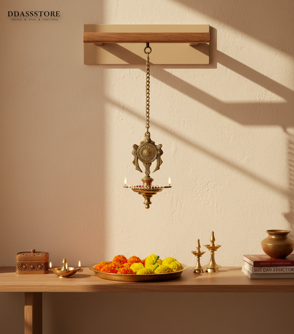 Traditional Brass Vishnu Shankh Chakra Hanging Diya Lamp | DDASSBR16