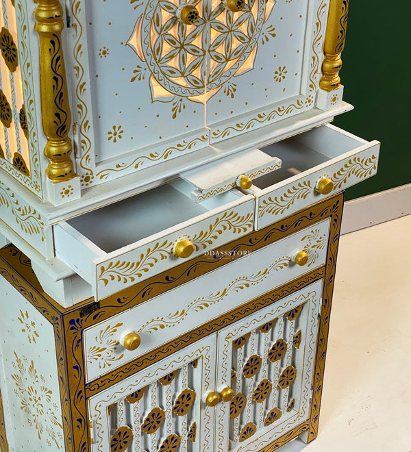 Wooden Pooja Temple & Puja Mandap with Cabinet for Home